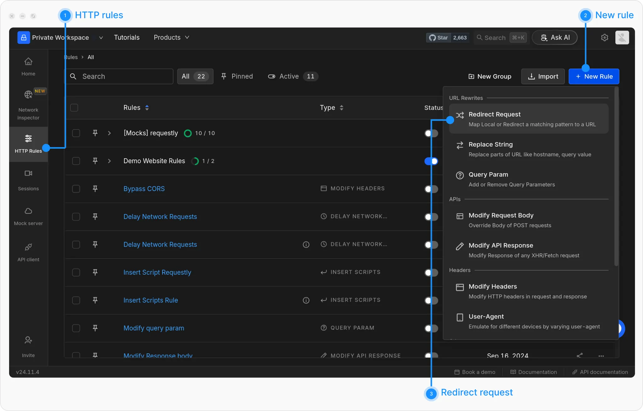 Match the bakery products API in the Requestly Playground:
