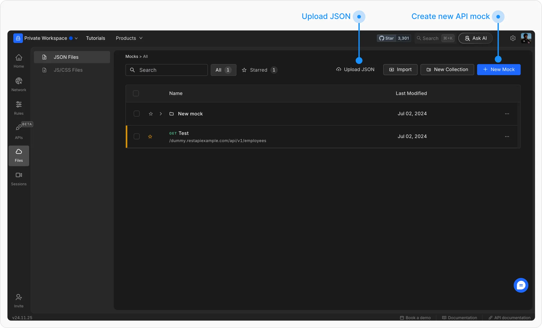 To create a cloud mock, you’ll first create a file on the File Server and then set up a Redirect Rule to serve it in place of a real API.Step 1: Create a File on Requestly’s File Server