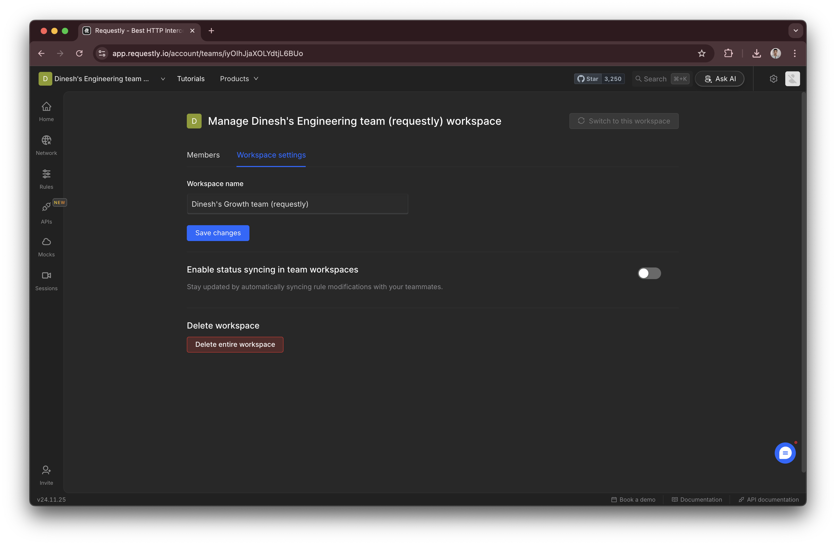 In the Requestly dashboard, locate and click on your workspace name at the top.